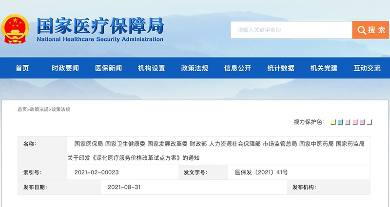 8月31日, 國家醫(yī)保局等八部門聯(lián)合印發(fā) 《深化醫(yī)療服務(wù)價格改革試點方案》的通知(醫(yī)保發(fā)〔2021〕41號,以下簡稱《方案》)。