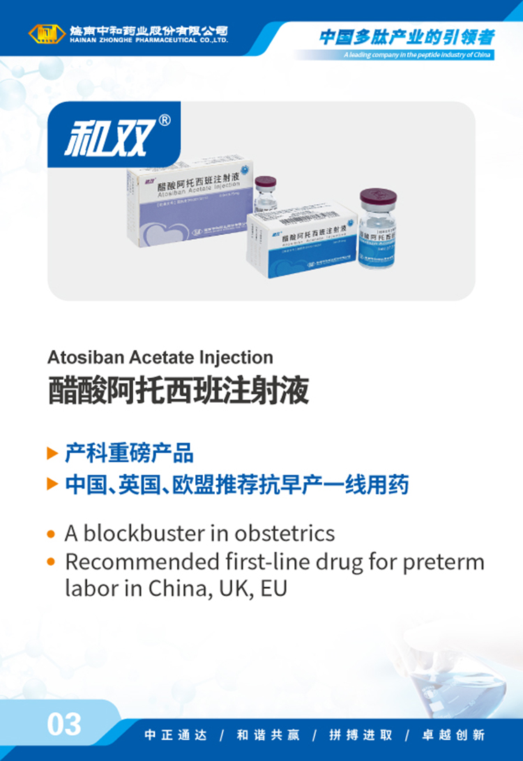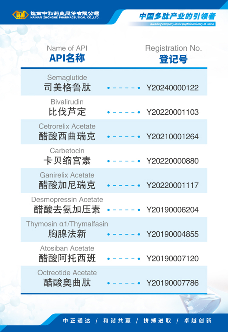 海南中和藥業(yè)股份有限公司(以下簡(jiǎn)稱(chēng)中和藥業(yè))成立于1995年4月17日,為我國(guó)最早專(zhuān)門(mén)從事化學(xué)合成多肽藥物的研究和實(shí)現(xiàn)產(chǎn)業(yè)化的國(guó)家高新技術(shù)企業(yè),中國(guó)國(guó)內(nèi)第一個(gè)化學(xué)合成多肽類(lèi)新藥“注射用胸腺五肽”就由中和藥業(yè)自行研發(fā)上市,填補(bǔ)了中國(guó)多肽產(chǎn)業(yè)的空白。歷經(jīng)近30年的發(fā)展,公司產(chǎn)品已涵蓋免疫、腫瘤、肝病、心血管、內(nèi)分泌、婦科圍產(chǎn)等多個(gè)治療領(lǐng)域,并擁有多肽原料藥、化學(xué)原料藥及小容量注射劑(包括預(yù)灌封、卡式瓶)、凍干粉針劑、片劑、膠囊劑等多種劑型的生產(chǎn)能力,產(chǎn)品已成功出口韓國(guó)、烏茲別克斯坦等多個(gè)國(guó)家和地區(qū)。