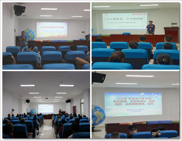 2025年6月是第24個全國“安全生產(chǎn)月”,為了深入貫徹落實安全生產(chǎn)方針政策,切實增強全員安全意識和應急能力,海南中和藥業(yè)股份有限公司圍繞“人人講安全、個個會應急——查找身邊安全隱患”主題,精心組織、周密部署全員安全培訓與應急演練系列活動,從生產(chǎn)一線員工到公司管理層,全員參與,共同奏響安全生產(chǎn)的主旋律。