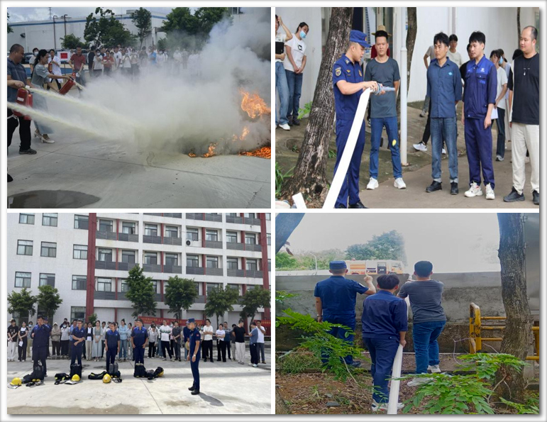 6月安全月系列活動的最后一項是消防器材實操演練。在演練中,首先在專業(yè)消防人員的指導下,點燃演習專用鐵桶內(nèi)汽油,參與演練員工依次排隊實際操作滅火器進行滅火;然后公司應急消防隊伍4個人演練消防服穿著示范。最后,進行室外消火栓、消防水帶、水槍消防器材使用演練。通過以上消防器材實操演練或示范觀看,員工熟悉了常用消防器材性能和操作流程,確保在火災發(fā)生時能夠迅速、正確地使用這些器材進行滅火,控制火勢蔓延,夯實公司一線員工撲滅初期火災的能力。