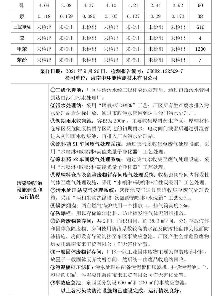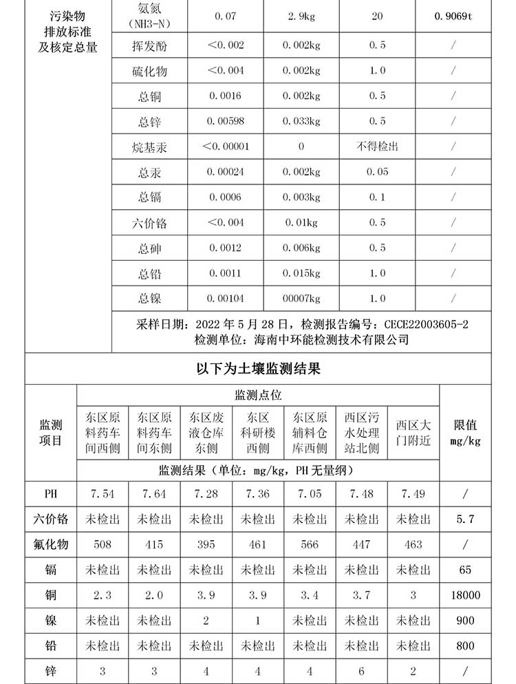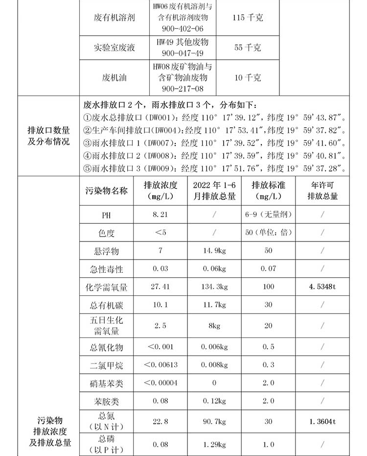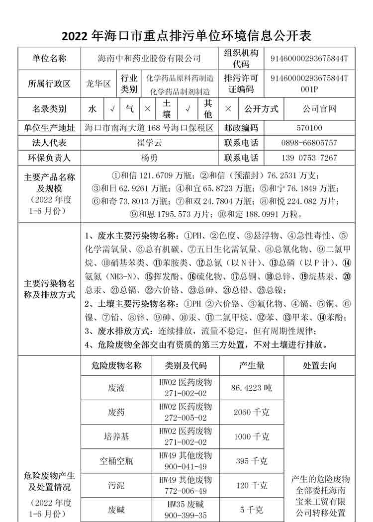 海南中和藥業(yè)股份有限公司2022年??谑兄攸c(diǎn)排污單位環(huán)境信息公開表