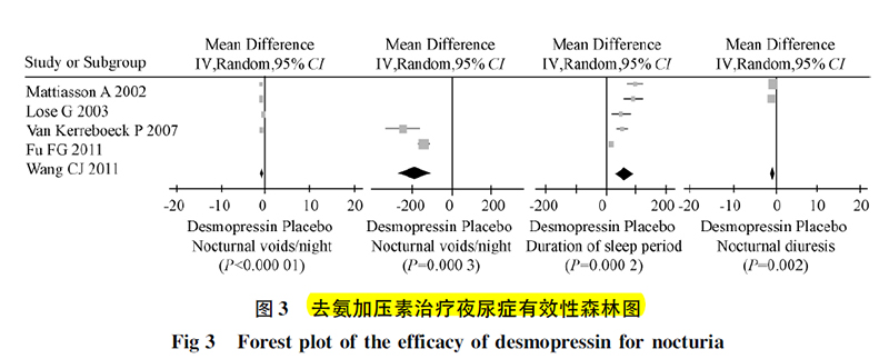 夜尿癥定義為夜間起床排尿,可以發(fā)生于任何人群、任何年齡,但是以老年人多見。夜尿癥明顯干擾患者睡眠,影響生活質(zhì)量。本文對去氨加壓素治療夜尿癥的有效性及安全性進(jìn)行了系統(tǒng)評價和Meta 分析。