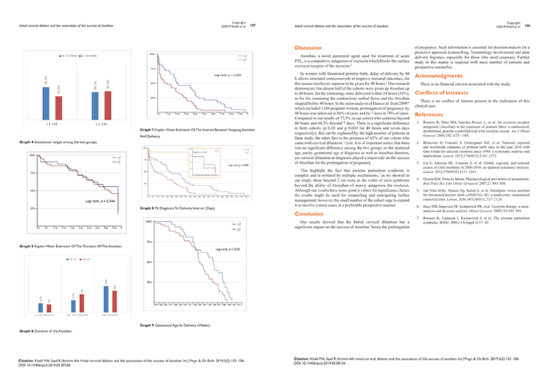 結(jié)論:我們的結(jié)果顯示,初始宮頸擴(kuò)張對(duì)阿托西班延長(zhǎng)妊娠時(shí)長(zhǎng)的成功率有顯著影響。這些數(shù)據(jù)對(duì)于決策者能采取主動(dòng)措施至關(guān)重要。
